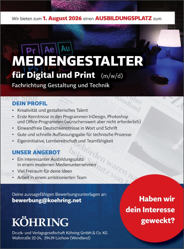 Anzeige | Offene StellenDruck- und Verlagsgesellschaft Köhring GmbH & Co. KG Büro & Dienstleistung Mediengestalter:in für Digital- und Printmedien