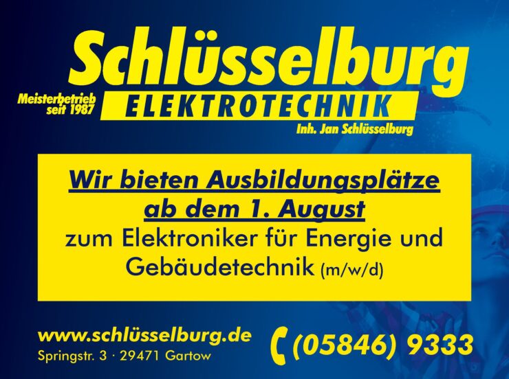 Anzeige | Offene StellenSchlüsselburg Elektrotechnik GmbH Elektroniker:in der Fachrichtung Energie- und Gebäudetechnik Handwerk & Tradition