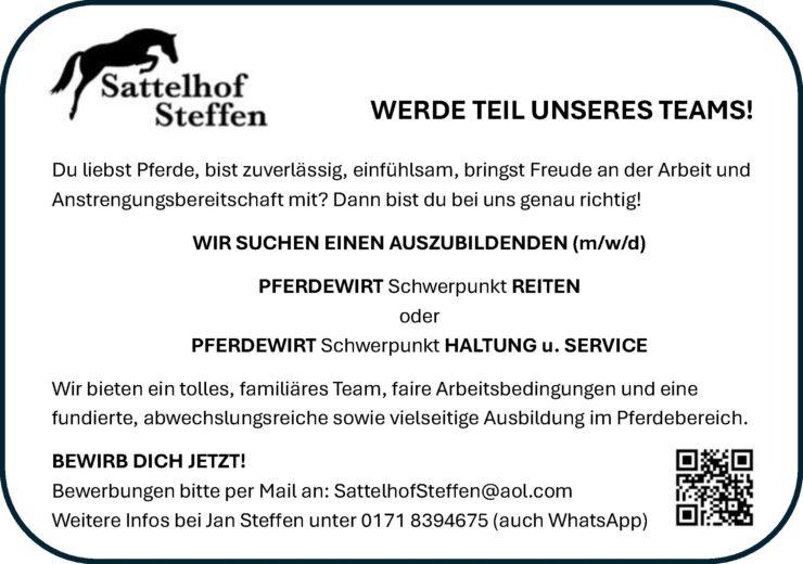 AllgemeinSattelhof Steffen Handwerk & Tradition Pferdewirt:in Schwerpunkt Haltung und Service Pferdewirt:in Schwerpunkt Reiten