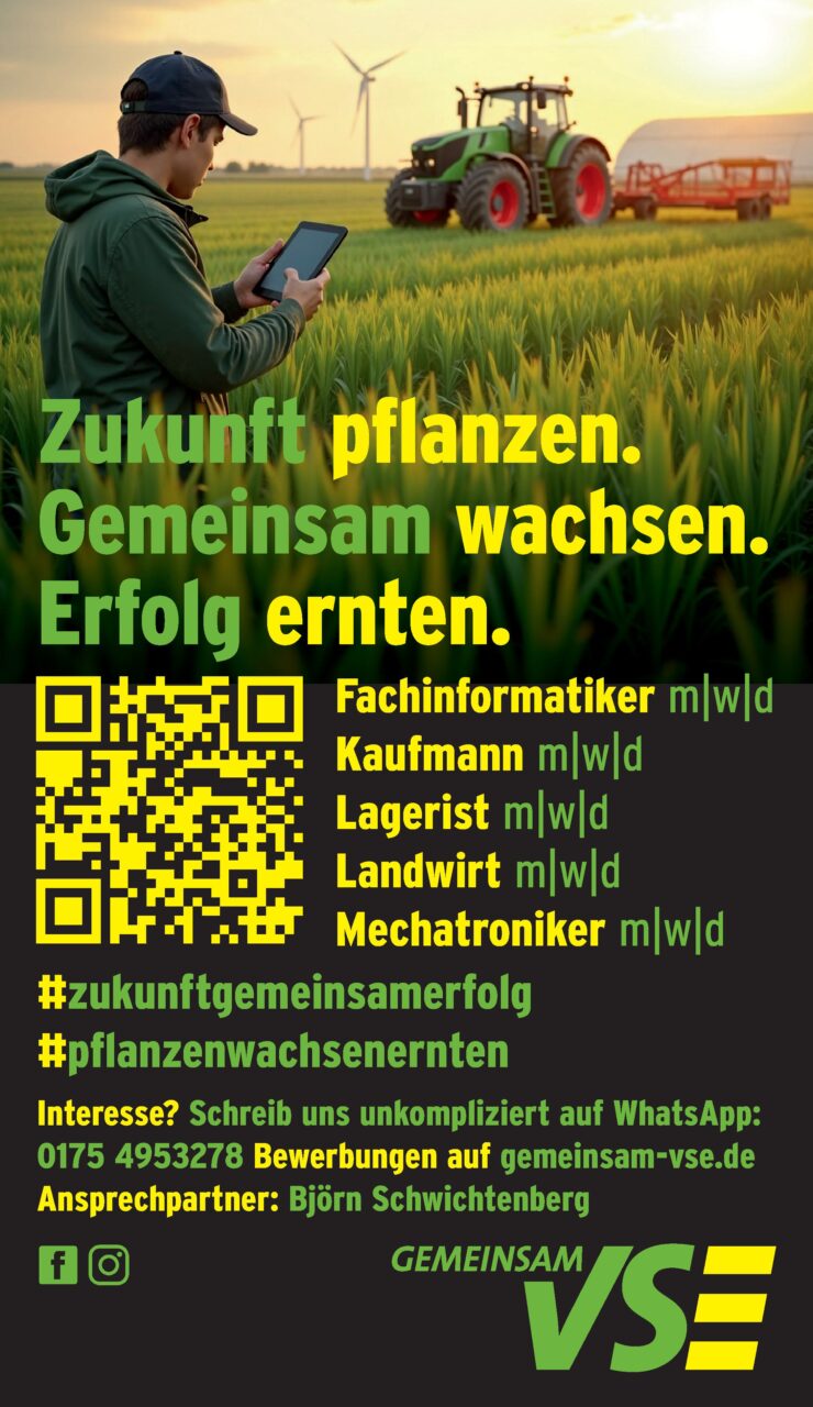 Anzeige | Offene StellenVSE Büro & Dienstleistung Fachinformatiker:in Fachkraft für Lagerlogistik Industrie, Werkstatt & Handel Kaufleute Landwirt:in Mechatroniker:in